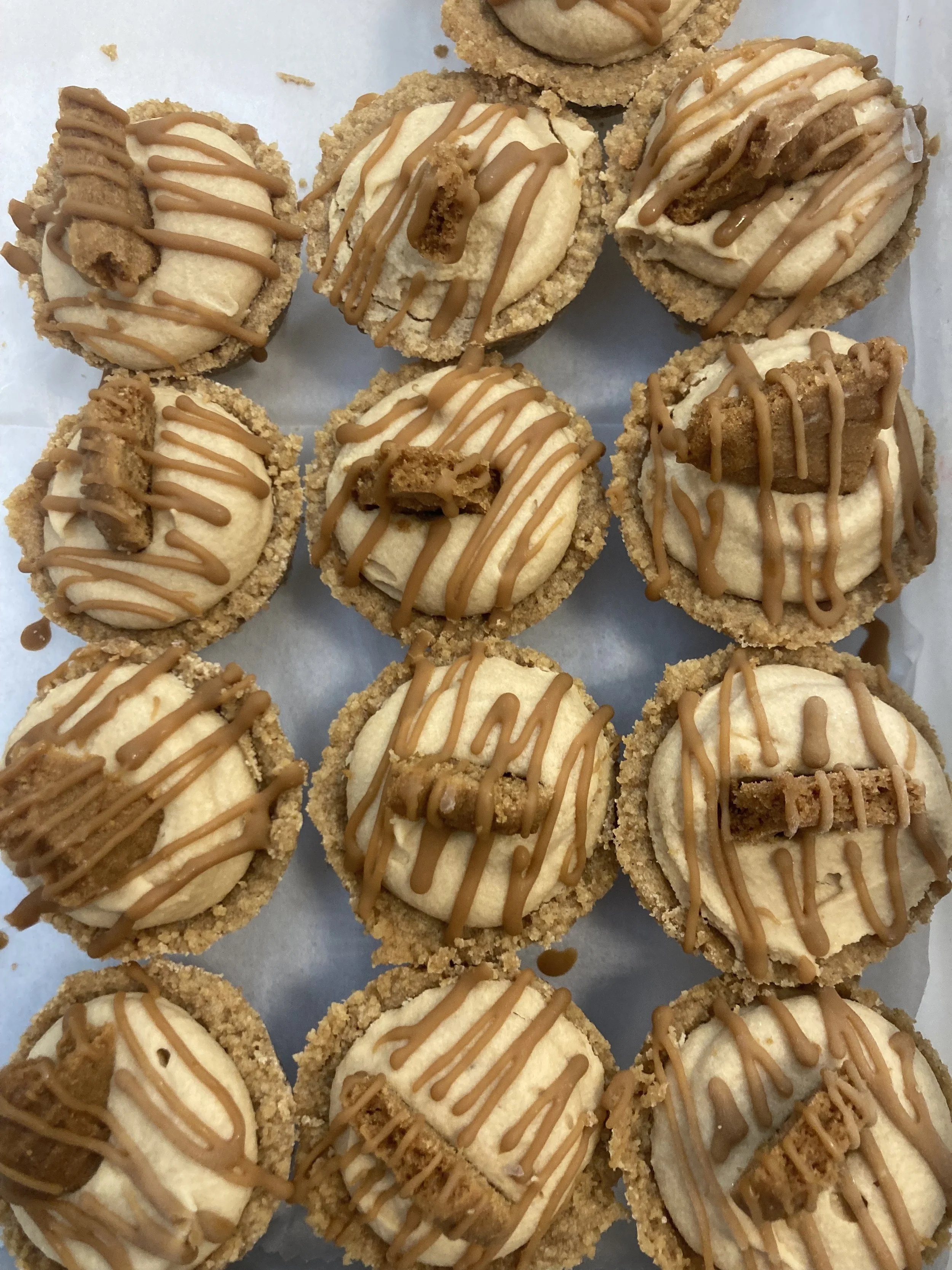 graham cracker crust, cookie butter “biscoff” cheese cake , accented with cookie butter cookie